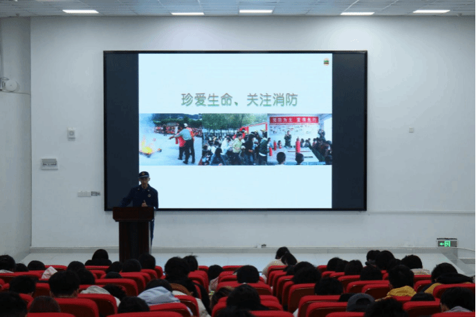 讲座中,黄改革指出,火灾发生时,务必保持冷静并采取正确的自救方法,将其归纳为两方面,一是准确报警,为生命争取时间;二是理性逃生,牢记安全第一。他结合生活案例及课件照片,介绍了专业的救援力量和救援体系,向副班长和参会同学系统的介绍了消火栓等基础消防用具的使用方法。