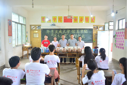 世纪英才班班长曾纪罗说道:“如今,城市发展速度远远快于农村,农村孩子往往没有足够的条件去发展自己的兴趣爱好。因此我们向江变小学捐赠我团购买的各种学习用品,体育器材,爱心图书等物资,希望能贡献自己的一份力量。”